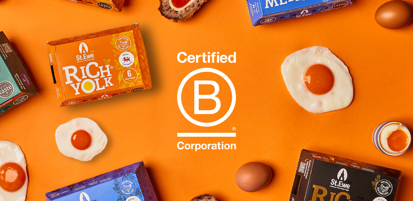 At St. Ewe, we believe in doing what’s right, not what’s easy. As a female-owned, family-run business, integrity has always been at our core - prioritising hen welfare, producer relationships, ethical farming, and employee wellbeing in everything we do. Achieving B Corp certification reflects this commitment, ensuring we are continuously measured, held accountable, and always striving to improve our impact on people and the planet.