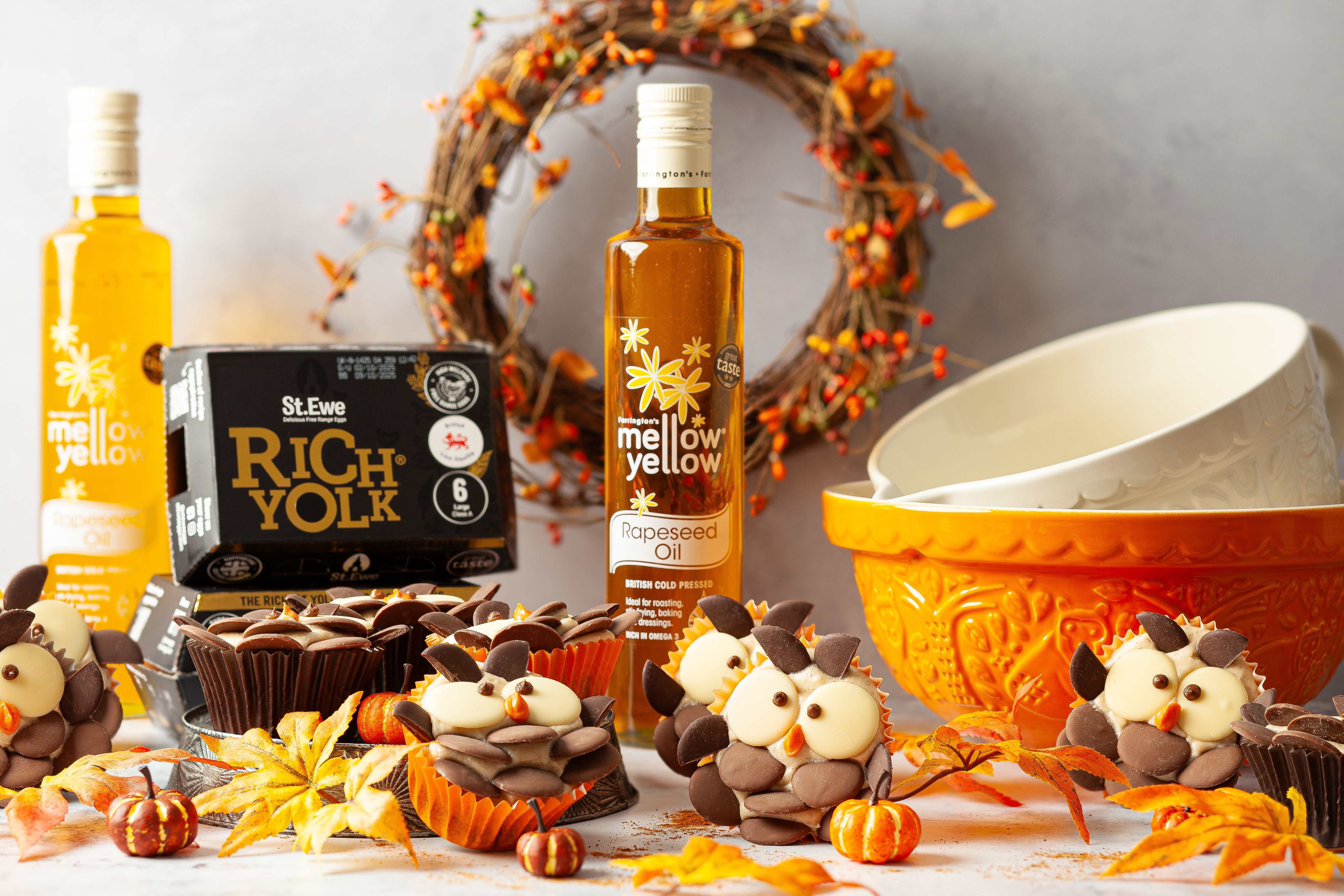 Serves: 10 CupcakesGently spiced and decadently chocolatey, these chocolate & pumpkin spiced owl cupcakes bring cosy autumn flavours and adorable charm to seasonal festivities such as Halloween and Bonfire Night. Made using our Rich Yolk Luxuriously Large Eggs and Mellow Yellow's Rapeseed Oil, these cupcakes are wonderfully soft and tender.