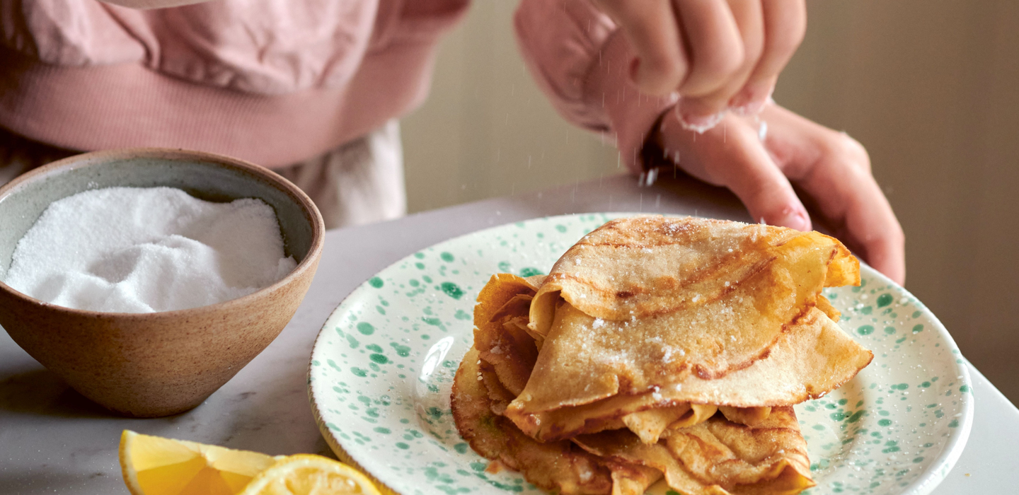 - - Step 4To serve, Cici and I like to fold into quarters. Top with ingredients of your choice, slice bananas, raspberries and a dollop of Greek yoghurt – or keep things classic with lemon and sugar.