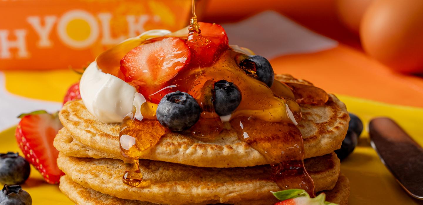 Serves: 2 PeopleFluffy oat pancakes made with St. Ewe Rich Yolk Free Range Eggs, topped with Greek yoghurt and fresh berries. Packed with vitamins, antioxidants, and wholesome goodness, they’re a delicious breakfast that supports healthy skin, hair, and nails.