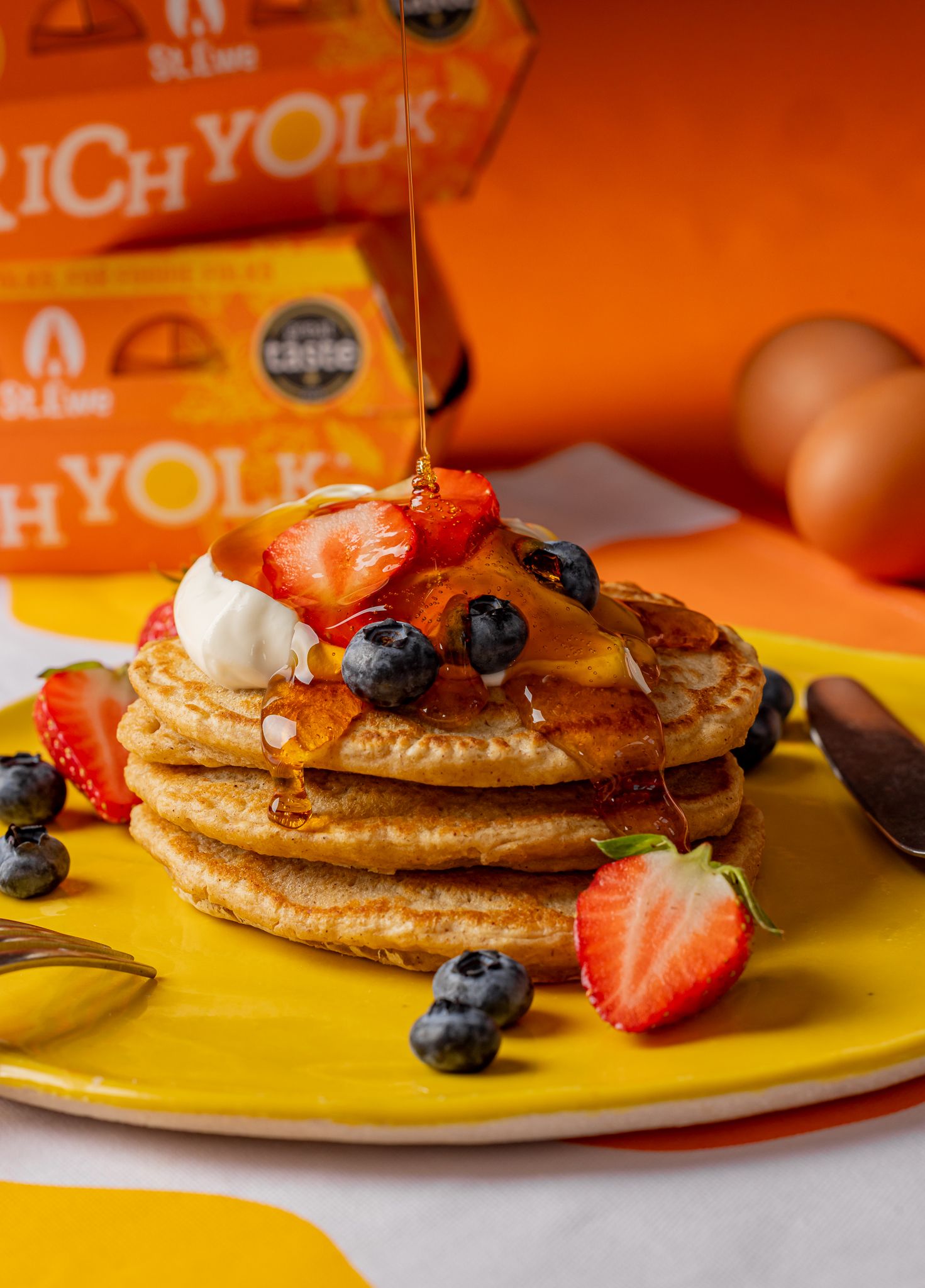 Serves: 2 PeopleFluffy oat pancakes made with St. Ewe Rich Yolk Free Range Eggs, topped with Greek yoghurt and fresh berries. Packed with vitamins, antioxidants, and wholesome goodness, they’re a delicious breakfast that supports healthy skin, hair, and nails.