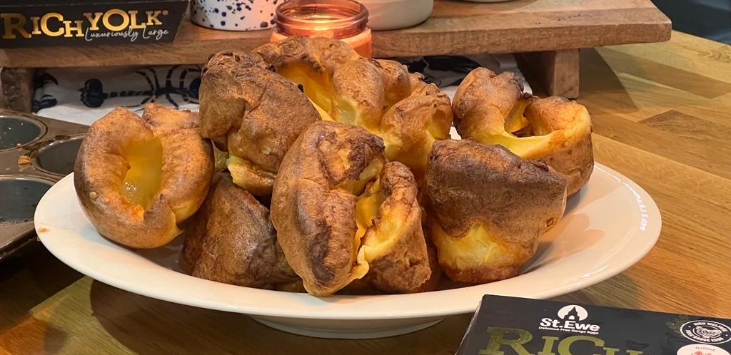 Serves: 12 YorkiesThese perfectly risen Yorkshire puddings are made extra golden and indulgent with St. Ewe Luxuriously Large Rich Yolk eggs. Light, crisp, and beautifully fluffy - the ultimate addition to your Sunday roast or Christmas dinner.