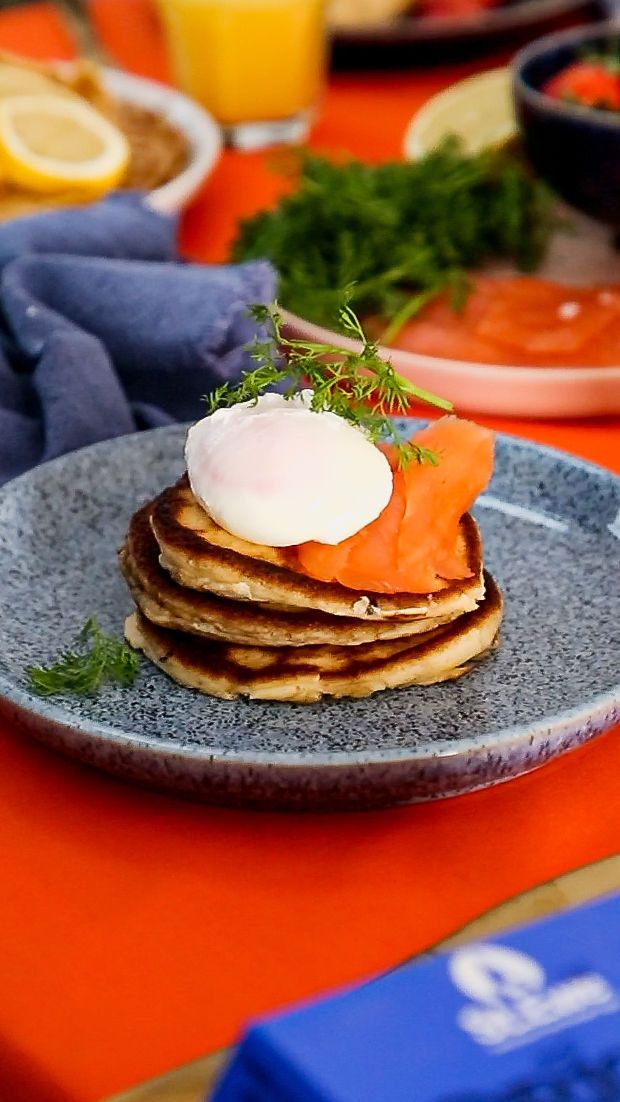 Serves: 2 PeopleThese Salmon & Poached Egg American Pancakes are rich, fluffy and seriously brunch-ready. Think golden pancakes stacked with silky smoked salmon, a soft poached egg and a shower of fresh dill - indulgent, savoury and absolutely worth the extra effort. Ideal for weekend brunches when cereal just won’t cut it. Recipe in collaboration with A Cup of Tea and Cake.