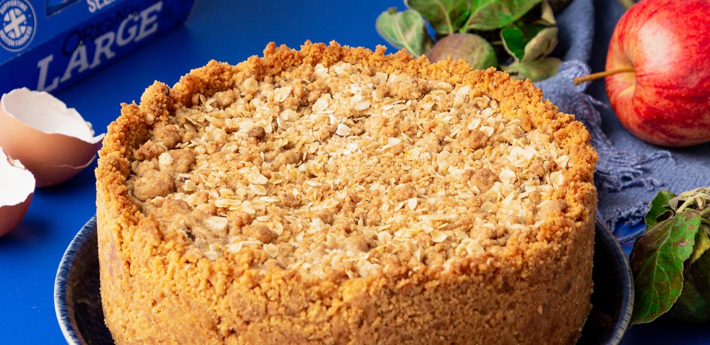 Serves: 6 PersonCelebrate cosy baking season with our Spiced Apple Crumble Cheesecake – layers of creamy cheesecake, sweet cinnamon-spiced apples, and a golden oat crumble topping. Made with St. Ewe Original Large Free Range Eggs for richness and depth, this bake is the perfect balance of comfort and indulgence. A true autumn centrepiece that’s as beautiful as it is delicious.